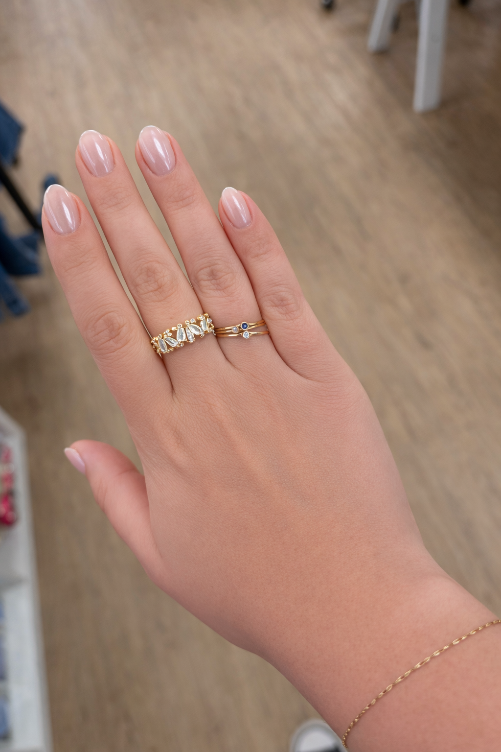 Gold ring band with rectangular bling. Looks great on its own or paired with the larger bling ring.