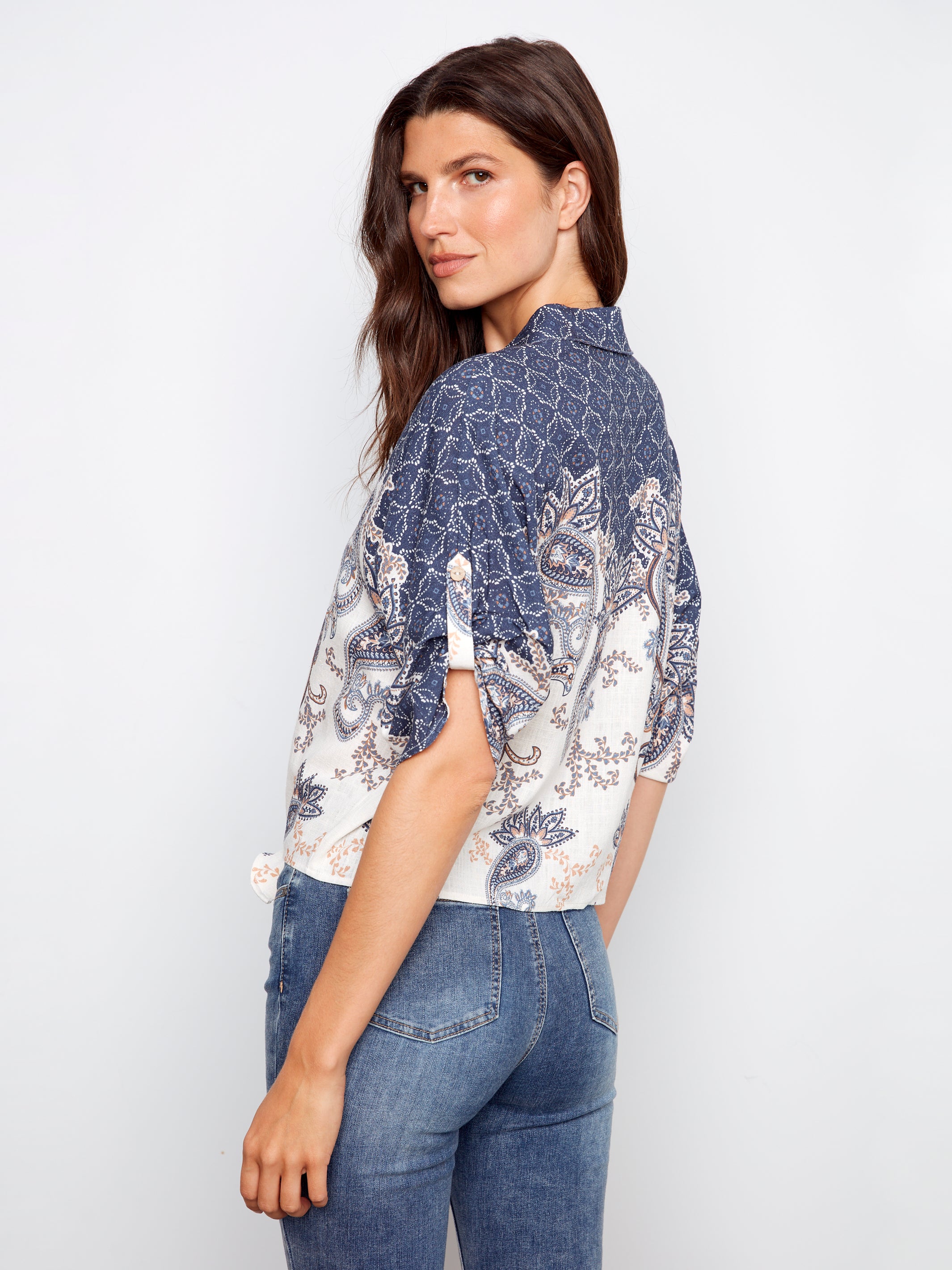 Charlie B Tie Top Denim With Paisley Design