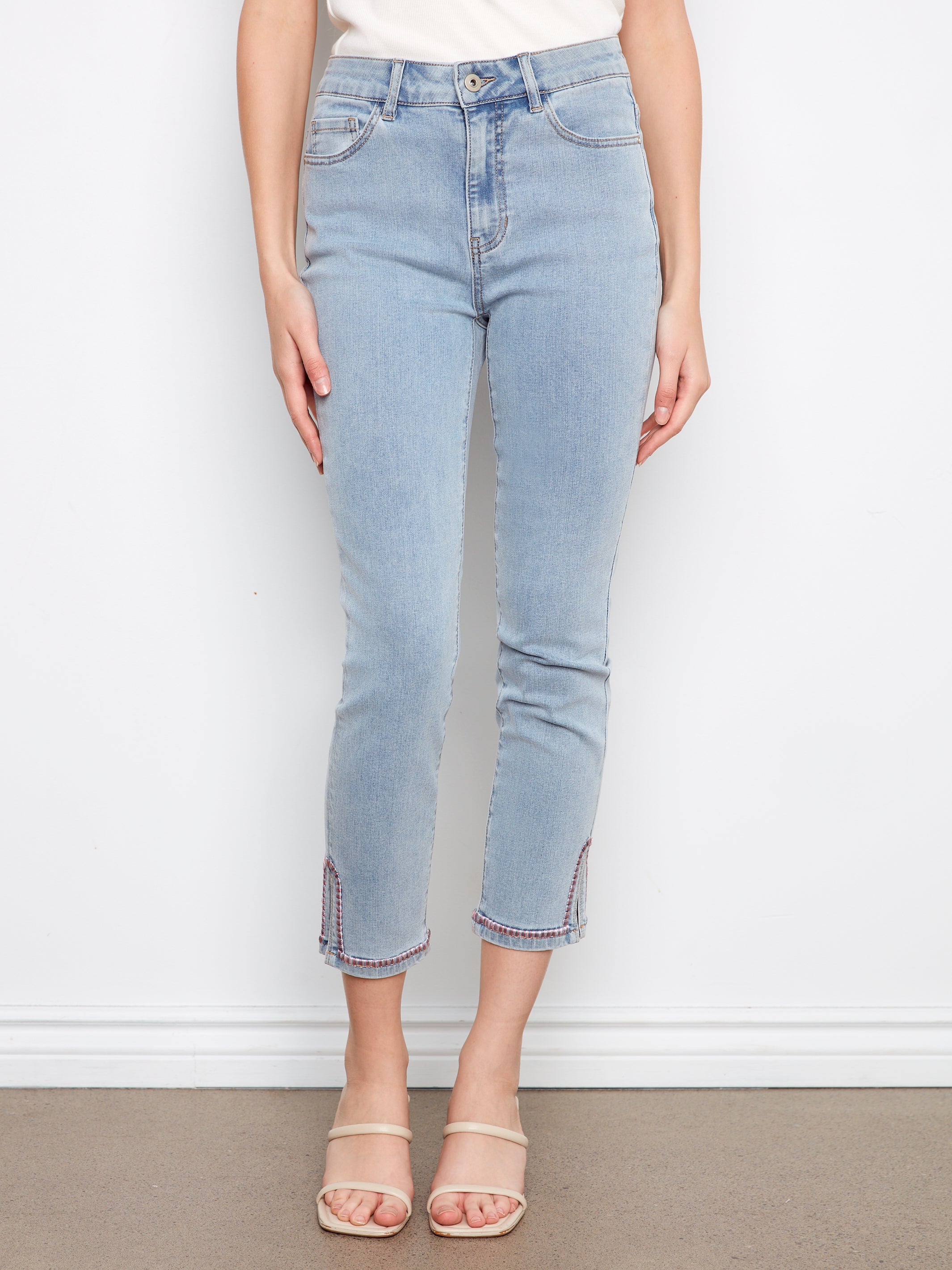 Charlie B Slim Leg Light Wash Blue Denim With Ankle Embriodery