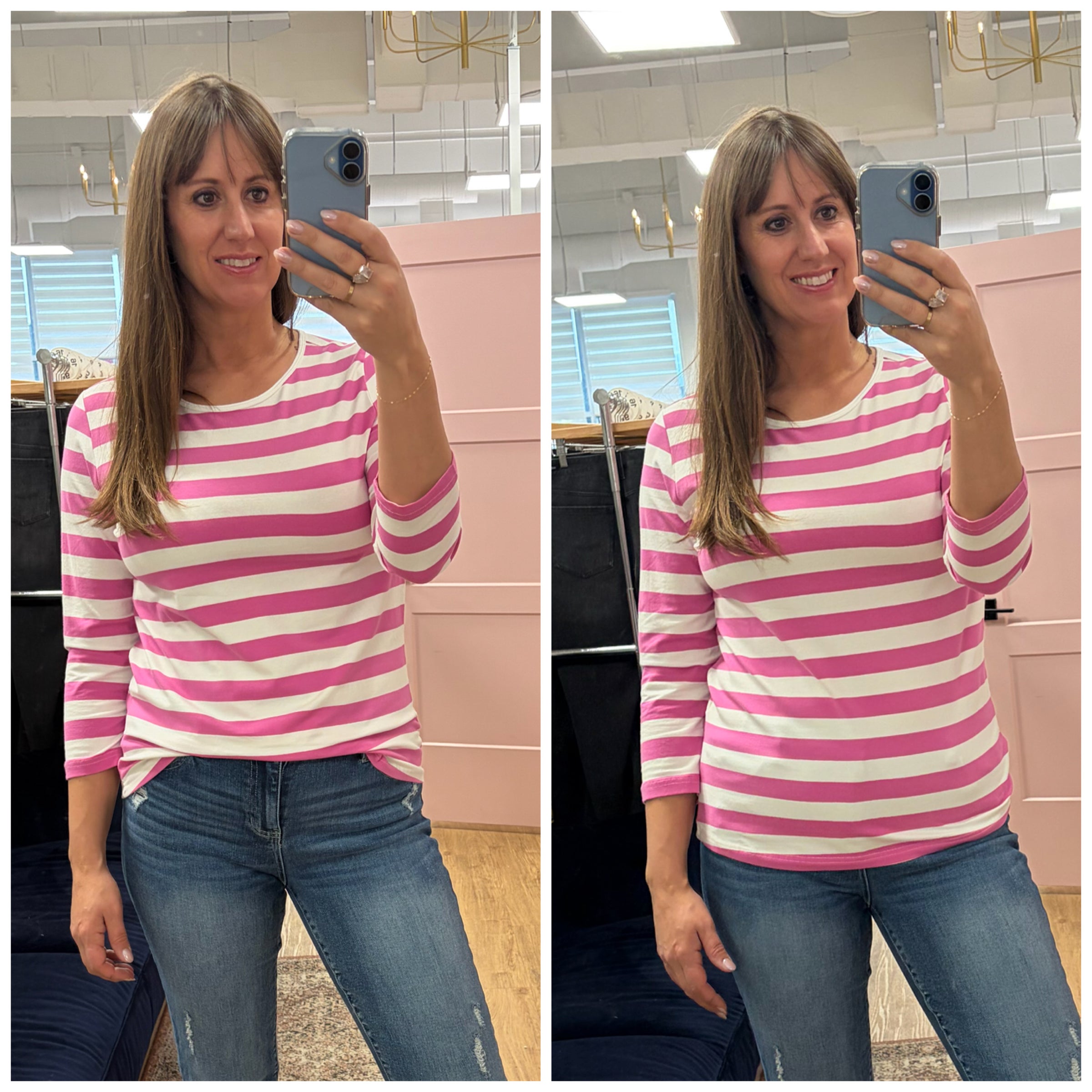 Jensen 3/4 Sleeve Striped T-Shirt Pink